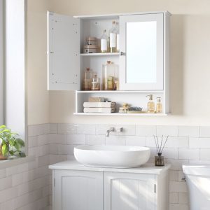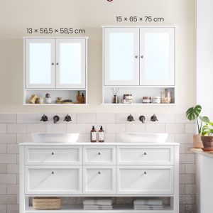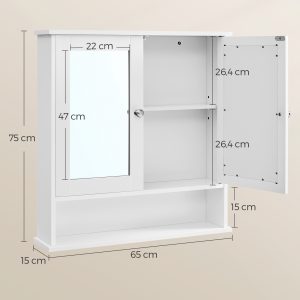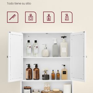 Armario de baño con espejo de pared, 2 puertas, balda ajustable