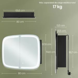 Transforma tu baño en un espacio moderno y funcional con este Espejo de Baño con Luz LED y Estación de Carga Integrada. Su diseño elegante y práctico combina un espejo iluminado con almacenamiento ajustable, facilitando tu rutina diaria al tiempo que aporta un toque decorativo a tu cuarto de baño.