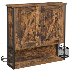 Este armario no solo es un mueble, es una declaración de estilo. Con su diseño de marrón rústico y negro mate y detalles cuadrados, este gabinete aporta un aire industrial chic que capturará todas las miradas. Además, está diseñado para resolver todos tus problemas de almacenamiento con espacios especialmente pensados para tus necesidades de belleza.