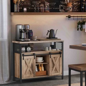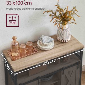 Diseñado con una combinación de resistente acero y tablero de aglomerado, este armario no solo es estilizado sino también funcional. Desde tu cafetera hasta tus platos, todo encuentra su lugar con fuerza y estilo.