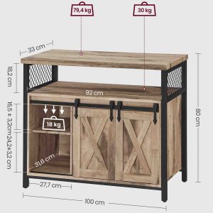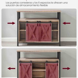 Experimenta la calidez del diseño rústico con nuestro armario de cocina de madera marrón, realzado con puertas de granero y paneles de malla. Crea un ambiente acogedor para tus cenas, convirtiéndolo en la razón perfecta para invitar a tus amigos a compartir momentos especiales.