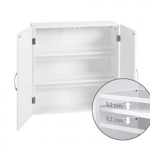 Almacenamiento Versátil: Equipado con dos estantes ajustables que ofrecen tres posiciones de altura, este armario es ideal para guardar desde tus productos de belleza hasta toallas, adaptándose a tus necesidades diarias.