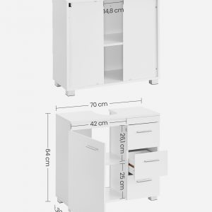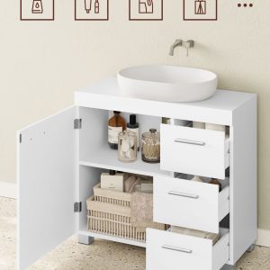 Construcción Robusta y Estable: Fabricado con tableros MDF de alta calidad, este mueble bajo lavabo es duradero y está diseñado para un uso prolongado. Incluye piezas antivuelco para mayor estabilidad.