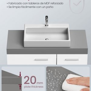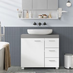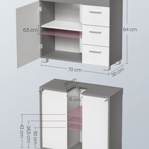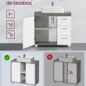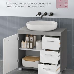 Armario lavabo baño, 3 cajones, 2 compartimentos, gris