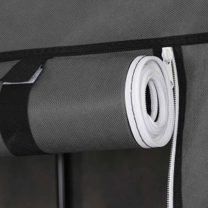 Protección y Accesibilidad: La puerta enrollable con cierre de velcro mantiene tus prendas libres de polvo, mientras las cremalleras reforzadas brindan acceso seguro y duradero.