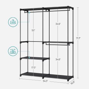 Fabricado con tubos de acero de 16 mm de diámetro y conectores de plástico reforzado, este perchero proporciona un soporte sólido para tu ropa, con una capacidad máxima de carga estática por barra de 20 kg. Su diseño robusto garantiza durabilidad y estabilidad, acompañándote durante todas las temporadas.