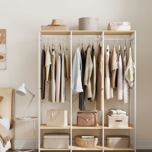 Fabricado con una estructura metálica resistente y tablero de aglomerado grueso, reforzado con barras en X en la parte posterior, este perchero está diseñado para soportar hasta 194 kg. Es perfecto para colgar incluso las chaquetas de invierno más pesadas, garantizando durabilidad y resistencia.