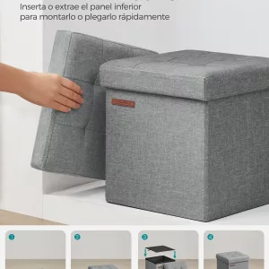 Baúl plegable de 80 litros con tapa lateral, tapizado textil