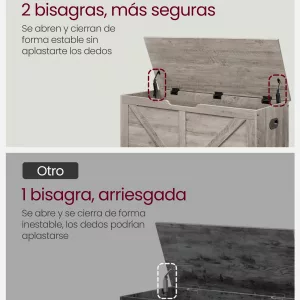Seguridad Asegurada: Equipado con bisagras de seguridad, este arcón protege tus dedos de ser aplastados, lo que lo hace seguro para hogares con niños.