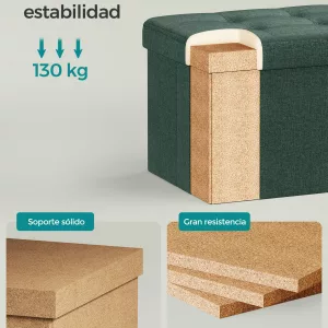 Banco con cofre de almacenamiento, asiento acolchado, marrón