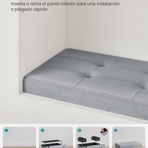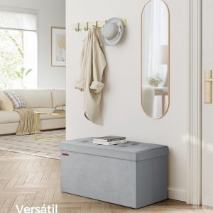 Gracias a su diseño plegable, este banco de almacenamiento se monta y desmonta rápidamente, ofreciendo una solución práctica para ahorrar espacio. Su multifuncionalidad lo convierte en una adición valiosa a cualquier sala, dormitorio o pasillo, funcionando no solo como caja de almacenamiento y reposapiés, sino también como mesa de café.