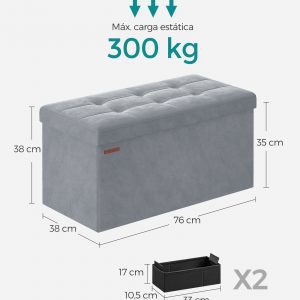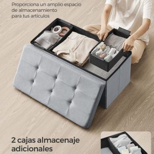 Con dimensiones de 38 x 76 x 38 cm y una capacidad de 89 litros, ofrece un amplio espacio para almacenar libros, mantas y mucho más, incluyendo 2 cajas de almacenamiento internas para organizar calcetines, ropa interior y otros artículos pequeños, manteniendo tu espacio libre de desorden.