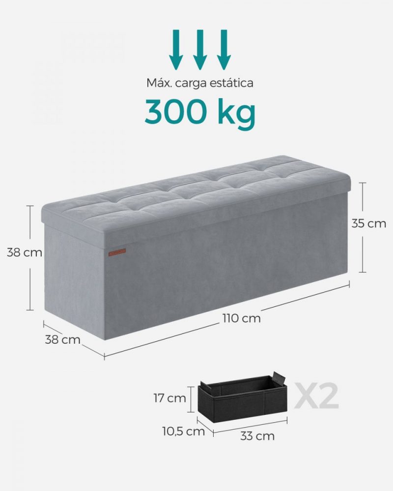 Elegancia y Durabilidad: Fabricado con una lujosa tela de terciopelo y reforzado con paneles de MDF de alta resistencia, este banco no solo presenta un aspecto elegante sino que también soporta hasta 300 kg, gracias a los protectores metálicos en las esquinas.