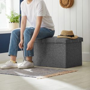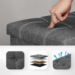Estilo y Comodidad: Con una tapa completa acolchada y una funda transpirable de aspecto de lino, este cofre invita a relajarse y añade un toque elegante a tu decoración.