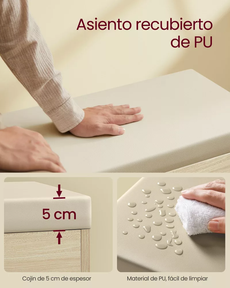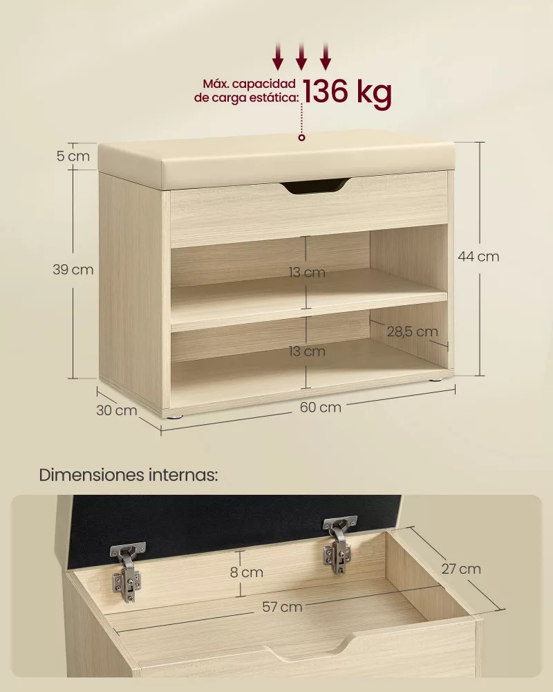 Banco Zapatero 30 x 60 x 44 cm Beige Natural