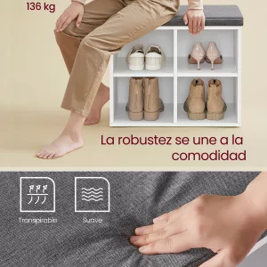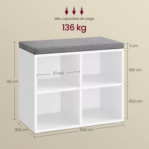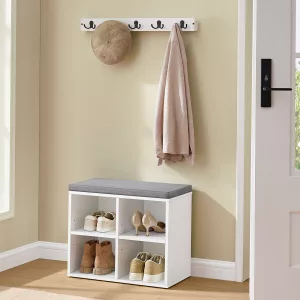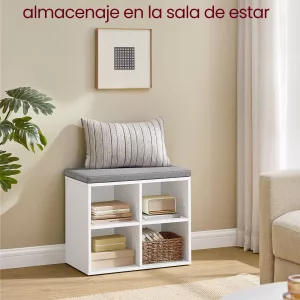 Banco Zapatero con 4 Compartimentos y 2 Estantes Ajustables Blanco Nube