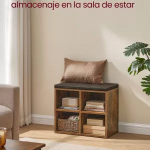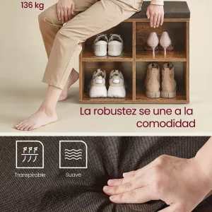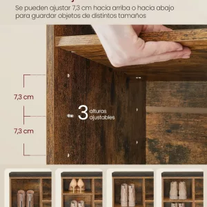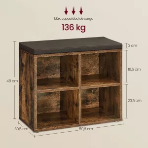 Banco Zapatero con 4 Compartimentos y 2 Estantes Ajustables Marrón Rústico