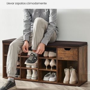 Asiento Cómodo y Resistente: Equipado con un cojín de espuma y una construcción sólida, el banco soporta hasta 200 kg, ideal para sentarse mientras te calzas los zapatos.