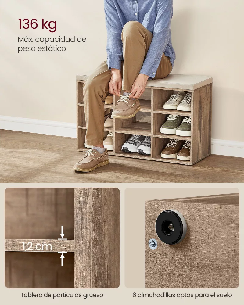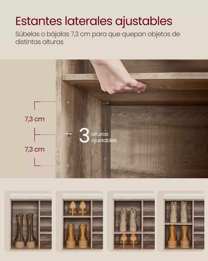 Mueble zapatero con 3 compartimentos y puerta abatible, marrón