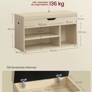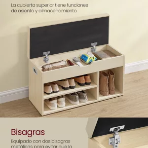 Versátil: Perfecto para dormitorios, entradas, pasillos o pisos, este banco zapatero se integra armoniosamente con cualquier estilo de decoración, manteniendo tu hogar organizado y acogedor.