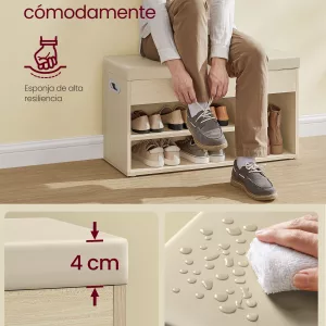 Asiento cómodo: Equipado con un cojín de espuma de 4 cm de grosor cubierto de PU, proporciona un lugar cómodo para sentarse, cambiarse de zapatos o descansar, además de ser fácil de limpiar.