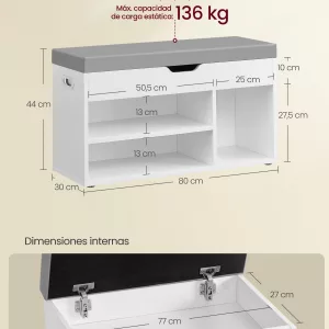 Versátil: Perfecto para dormitorios, entradas, pasillos o pisos, este banco zapatero se integra armoniosamente con cualquier estilo de decoración, manteniendo tu hogar organizado y acogedor.