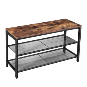 Eleva la funcionalidad y el estilo de tu entrada con nuestro Banco de Zapatos Triple-Bonus. Esta pieza única combina una elegante superficie de tono rústico-marrón con la funcionalidad de un zapatero, ofreciendo dos estantes de malla negra para un almacenamiento práctico y una pieza decorativa que embellece tu hogar con el toque distintivo del estilo industrial.