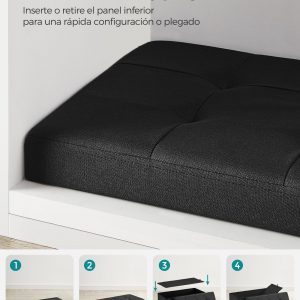 Gracias a su innovador diseño plegable, este banco de almacenamiento se monta en cuestión de segundos, permitiendo un uso inmediato. Cuando no se necesita, se pliega de manera compacta para almacenarse fácilmente, optimizando el espacio en tu hogar.