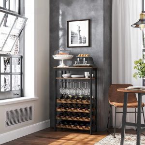Maximiza tu experiencia en la conservación y presentación de vinos con nuestro botellero, que combina funcionalidad superior y estilo sofisticado. Con capacidad para almacenar hasta 24 botellas y dotado de un estante especial para cristalería, así como un tablero dedicado para la preparación y mezcla de bebidas, este mueble es el complemento perfecto para cualquier coleccionista de vinos, adaptándose a todas tus necesidades de almacenamiento.