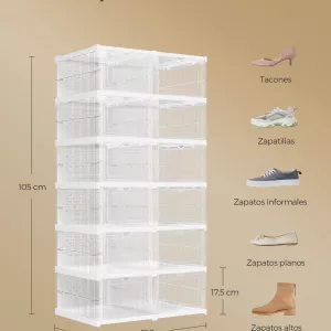 Cajas para Zapatos Juego de 12 Organizadores Apilables Transparente y Blanco Nube