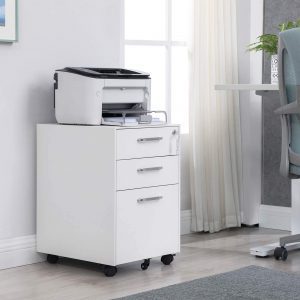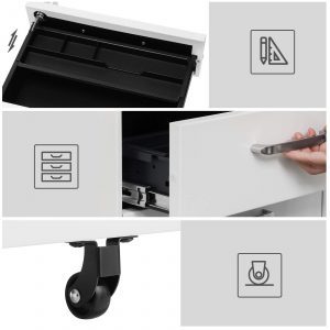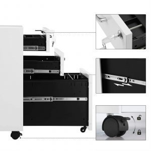 Fuerza y Capacidad: ¿Buscas un compañero de trabajo tan duro como tú? Esta cajonera de oficina, construida con un marco de acero sólido, puede cargar hasta 15 kg en cada cajón, satisfaciendo todas tus necesidades de almacenamiento. Además, cuenta con una rueda adicional en la base para asegurar su estabilidad.