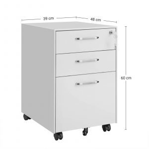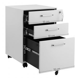 Qué Hay en la Caja: Una cajonera equipada con 3 cajones profundos y un candado para proteger tus documentos más confidenciales. Además, incluye 5 ruedas para una movilidad sin esfuerzos. Es el complemento perfecto para darle a tu oficina ese espacio extra que necesita.