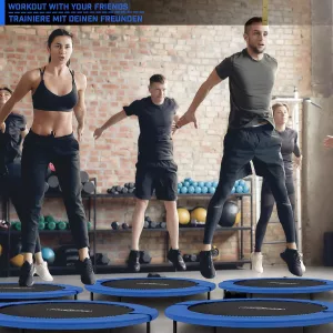 Los mini trampolines son herramientas perfectas para realizar entrenamientos efectivos en casa. Mediante ejercicios de coordinación, saltar en trampolín aumenta la resistencia y ejercita los músculos, disminuye la tensión en tu cuerpo y mejora la sensación de equilibrio, reforzando la diversión en tus entrenamientos. Este trampolín con soportes antideslizantes está fabricado de acero, y dispone de una superficie de salto resistente y de un marco de cobertura de muelles cómodo para evitar lesiones.