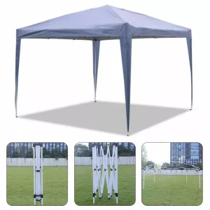 Esta carpa plegable de color azul, es práctica porque es plegable y telescópica.