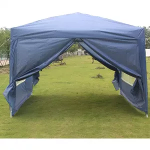 Esta carpa plegable color azul, con paredes desmontables y ventanas, repelente al agua y cortavientos te protegerá del sol con más de 50+ protección UV.