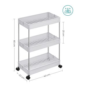 Olvídate del caos y del desorden con este práctico carrito de almacenamiento. Con unas dimensiones compactas de 40 x 22 x 60 cm, este carrito de 3 estantes es perfecto para organizar productos de baño, utensilios de cocina o documentos de oficina. Aprovecha cada centímetro de tu espacio con eficiencia y estilo.