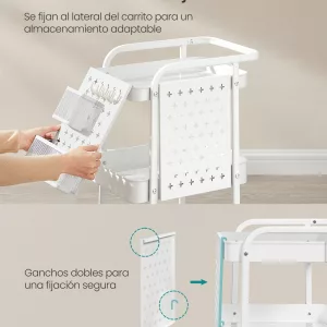 Estantería cocina industrial, estantes, 6 ganchos, greige y negro