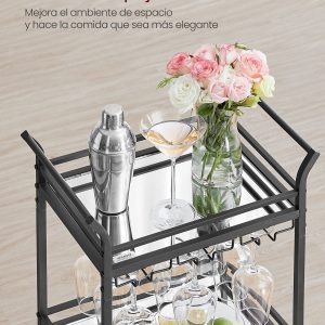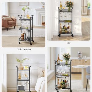 Este carro de bebidas es perfecto para quienes buscan una solución de almacenamiento y exhibición elegante y funcional. Su diseño sofisticado lo convierte en una pieza destacada en cualquier reunión o evento, aportando un toque de estilo y practicidad a tu hogar.