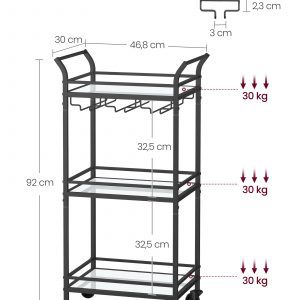 Diseño Compacto para Espacios Reducidos: Con medidas de 30 x 46,8 x 92 cm, este carro aprovecha al máximo los espacios pequeños, ofreciendo una solución de almacenamiento óptima.