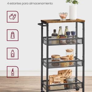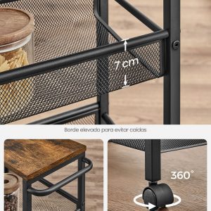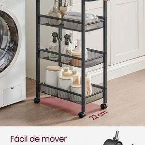 Este carro de cocina es ideal para cualquier persona que busque una solución de almacenamiento inteligente y versátil para espacios limitados. Su diseño elegante y funcional lo convierte en un complemento ideal para cualquier habitación, ofreciendo una forma conveniente de organizar y acceder a tus elementos esenciales diarios.