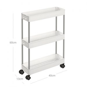 Aprovecha Espacios Reducidos: Con una anchura de solo 13 cm, este carro deslizante está diseñado para encajar en los huecos más estrechos, transformándolos en áreas útiles de almacenamiento sin ocupar espacio valioso.