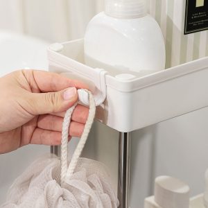 Resistente y Duradero: Construido con tubos de metal y estantes de plástico PP, este carro no solo es resistente al agua y fácil de limpiar, sino que también es capaz de soportar hasta 15 kg en total, ideal para almacenar botellas pesadas de detergentes, utensilios de cocina y más.