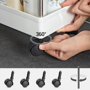 Movilidad Conveniente: Equipado con 4 ruedas universales y pivotes de metal, este carro se puede mover fácilmente, permitiéndote acceder a los objetos almacenados sin esfuerzo, lo que resulta especialmente útil en la cocina o mientras cocinas.