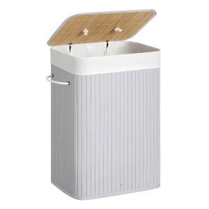 Cesto de ropa sucia de bambú con 3 asas, color gris