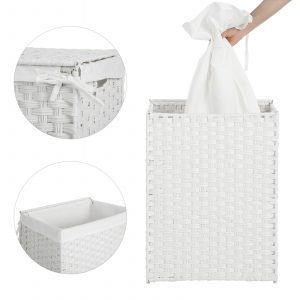 Fabricado con ratán PP transpirable e impermeable, este cesto asegura que tu ropa permanezca seca y ventilada. La estructura de metal robusta soporta hasta 25 kg, ofreciendo durabilidad y estabilidad. Gracias a las asas recortadas, mover el cesto es fácil y seguro, mientras que los pies inferiores protegen tu suelo de posibles arañazos. Además, su diseño plegable facilita el almacenamiento cuando no está en uso.