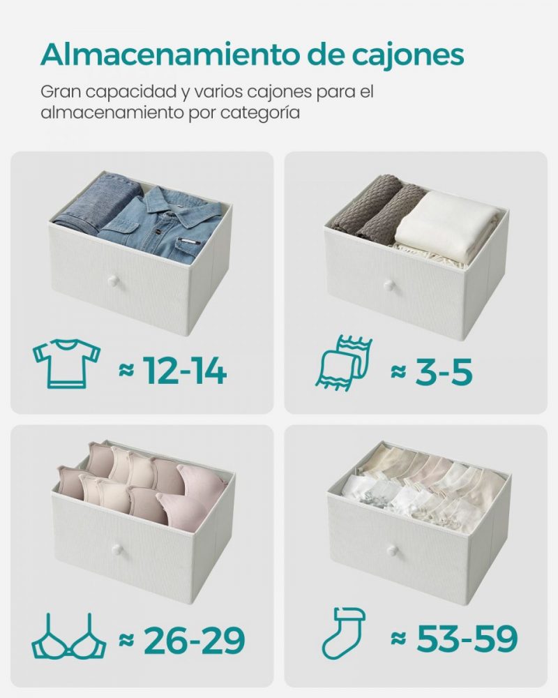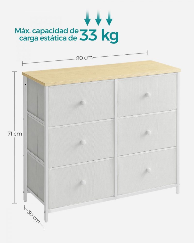 Dile adiós al caos de ropa y accesorios dispersos con nuestra Cómoda de 6 Cajones de Tela, diseñada para ser tu mejor aliado en la recuperación del orden en tu hogar. Ya sea que luches contra un mar de pijamas, mantas, o simplemente necesites un lugar adicional para guardar tus pertenencias, esta cómoda es la solución perfecta.