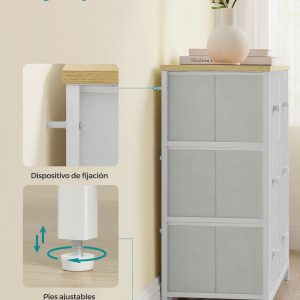 Construida con una sinergia de materiales que incluye tela no tejida, acero resistente y madera de ingeniería, esta cómoda es tanto estable como duradera, sin sacrificar la ligereza. Preparada para albergar tu creciente colección de ropa, cada cajón soporta hasta 3 kg, mientras que el tablero superior tiene una capacidad de 15 kg, perfecto para decoraciones o necesidades diarias.