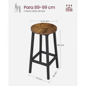 Dimensiones por taburete: 32 x 65 cm (Diámetro x Alto)