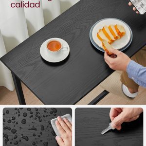 La combinación única de negro ébano y negro tinta añade un toque de sofisticación, ideal para aquellos que disfrutan del entretenimiento en casa. Además, su diseño inteligente permite que los taburetes se guarden ordenadamente bajo la mesa, maximizando el espacio cuando no están en uso.