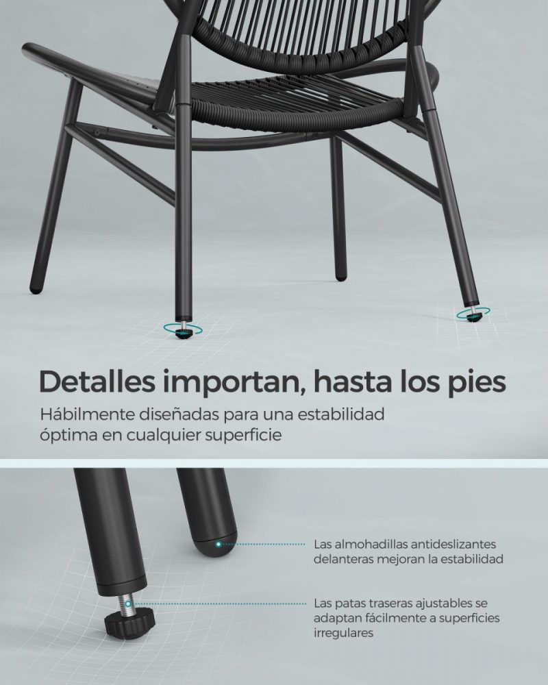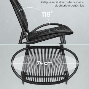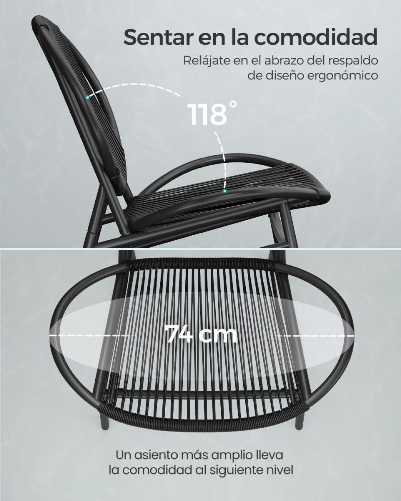 Dimensiones de cada silla: 68 x 74 x 78 cm (Profundo x Ancho x Alto)